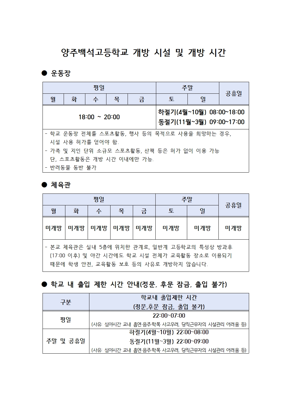 양주백석고 가이드북